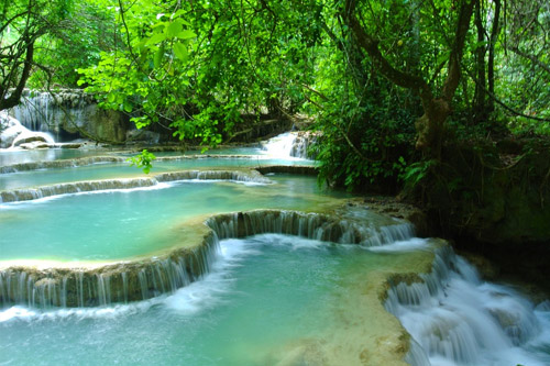 寮國被《紐約時報》評選為全球旅行必訪的53個國家第一名,其中「龍坡邦」名列世界文化遺產之列,更被聯合國評定為東南亞保存最好的城市,是人生必去的旅遊勝地之一。位於龍坡邦郊區29公里外的關西瀑布,可說是該市一大亮點。水量從山上奔瀉流下,形成3層的瀑布,最高的一層有將近100米,而當地獨特石灰岩地形的田梗,更形成瀑布一層接一層的獨特景致,遊客還在流水匯入水池中游泳、戲水,非常特別。