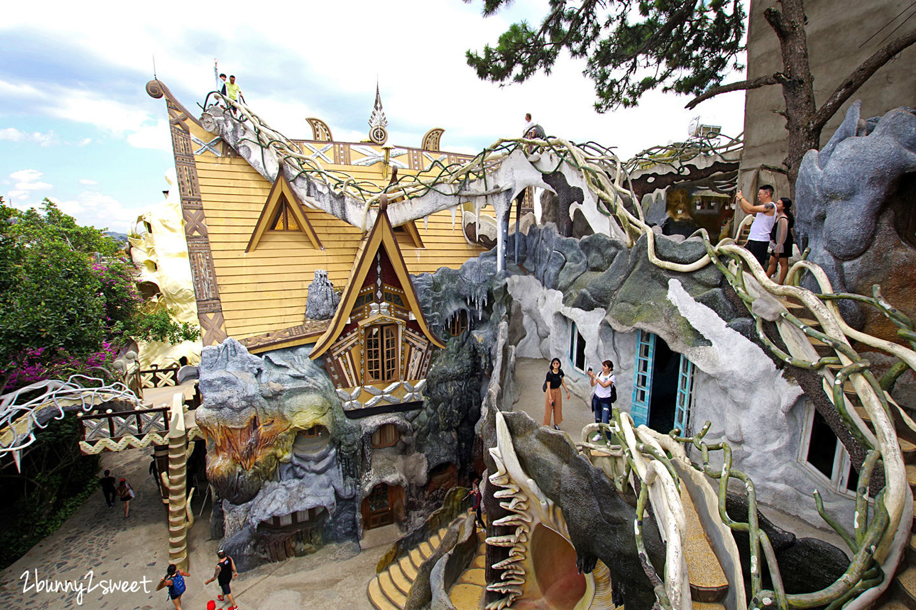 【Crazy House瘋狂屋】是越南最獨特的建築之一,由建築師鄧越 Nga 設計,融合童話與超現實風格。這座奇幻建築彷彿置身愛麗絲夢遊仙境,蜿蜒的樓梯、洞穴般的房間、不規則的窗戶與藤蔓裝飾,讓人驚嘆不已。瘋狂屋不僅是一座建築藝術作品,也是一間主題旅館,讓旅客體驗夢幻般的住宿環境。其獨特造型與創意設計,使其成為大叻最具代表性的景點之一,深受遊客喜愛。