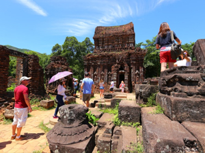 【美山占婆遺址群-世界文化遺產】《孤獨星球》雜誌稱「越南最值得做的 15 件事」之一就是參觀美山遺址保護區。為中越最著名的占婆遺址區。公元4世紀到14世紀之間建成,供奉占婆神靈及歷代國王,而占婆神靈中又以占婆王國的守護神濕婆神為主。1898年由一群法國人在叢林中發現掩蓋的占婆塔群,此地為越南一個時代文化交融的例證,它借鑒了南亞次大陸的印度教建築風格,是曾經統治越南中南部地區長達14個世紀的占婆王國的宗教和歷史文化中心。雖然越戰期間越共將此據為反攻基地,因此遭受美軍炮火的轟炸,許多遺跡已被破壞,不過遺跡群面積相當大,70座寺廟及古塔中目前遺留約25座建築,遺跡群內可看到壯觀的塔寺、以磚為主要建材,飾以砂岩雕飾,各種人獸石雕活靈活現,可見當時的石雕藝術以相當良好,所以美山勝地仍是這區域保留最完整的占婆遺跡,1999年已列為世界文化遺產名錄,是以作為現在已經滅絕的亞洲文明的證據列入為世界遺產。整個占婆建築有著獨特的細緻美感,初到此地有種在越南驚見吳哥窟的感覺。