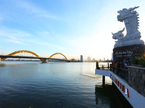 橫跨韓江東西兩岸,全長666公尺,整座橋身以金龍為造型,成為峴港最具代表性的地標,入夜後會搭配著不同顏色的燈光打在龍橋上,顯得更為漂亮,令韓江景致更迷人。