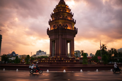 『獨立紀念碑』金邊市的精神堡壘,位於獨立廣場正中央,此碑是為了紀念於1953年當時的西哈努克國王宣布脫離法國殖民成立王國而建立,建築溶合柬埔寨文化及歷史,是高棉獨立的標誌。