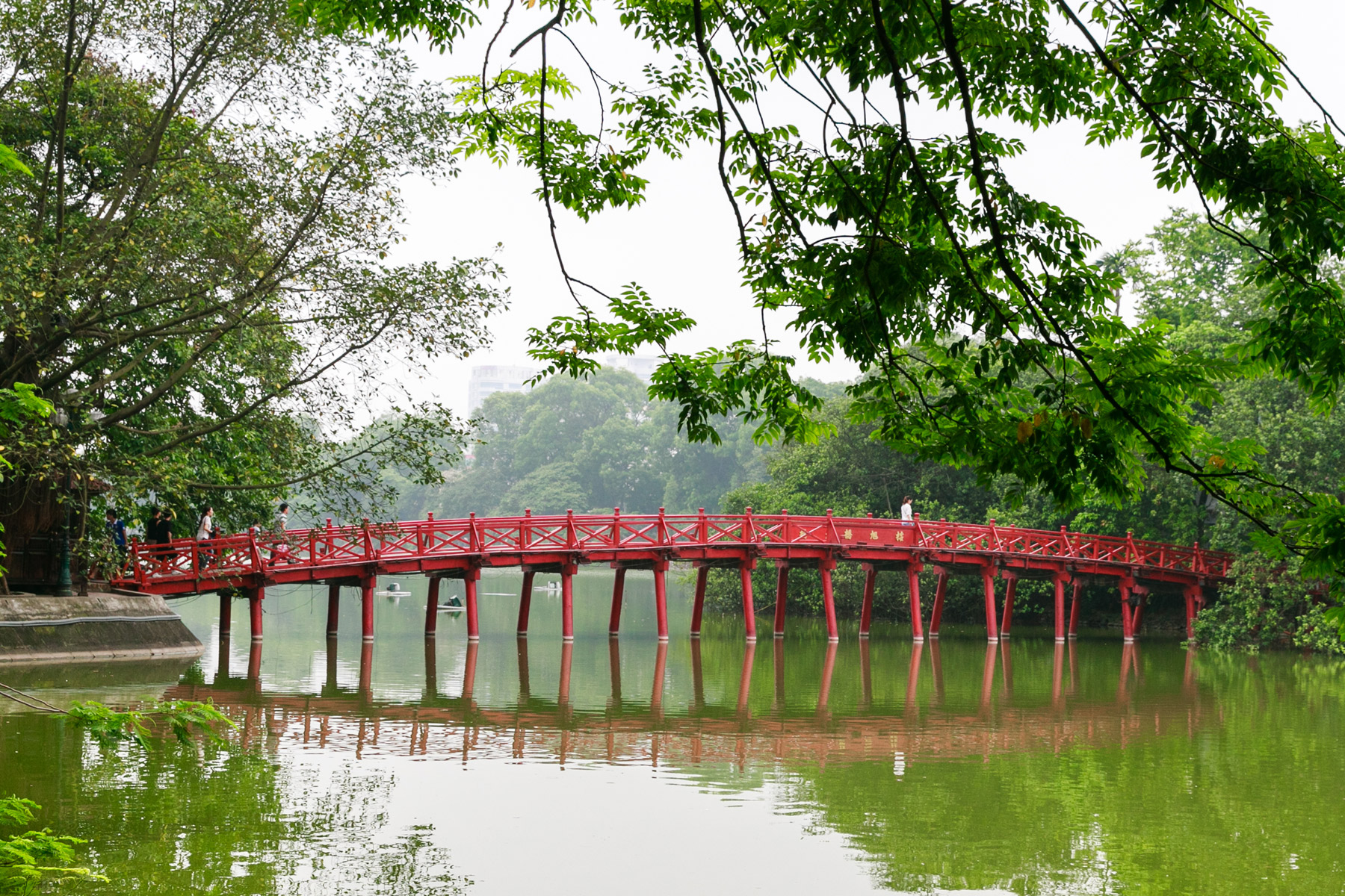 『還劍湖Hoan Kiem Lake』位於昇龍古城區,周圍便是河內市的鬧區,湖濱綠草如茵、湖水清澈、十分優美。傳說在十五世紀中葉,黎太祖曾獲神劍之助擊退中國大軍侵略,戰後黎太祖遊還劍湖,忽見一隻大龜浮出水面向他索劍,因名還劍湖;湖中有一座三層樓的龜塔,以紀念這段傳說。