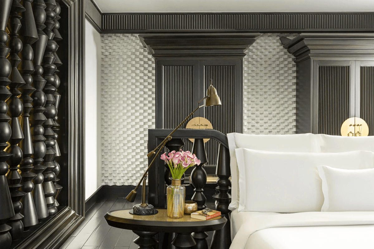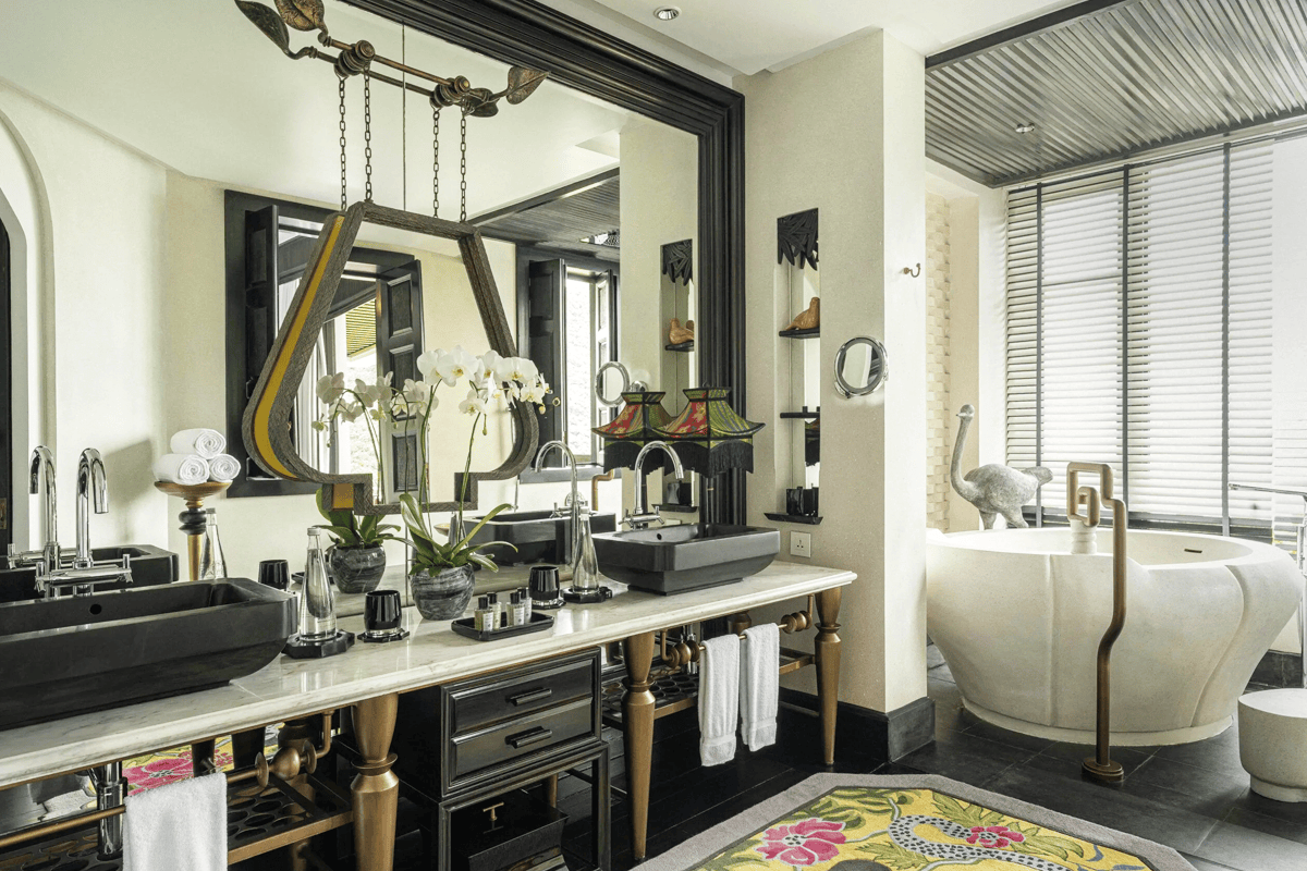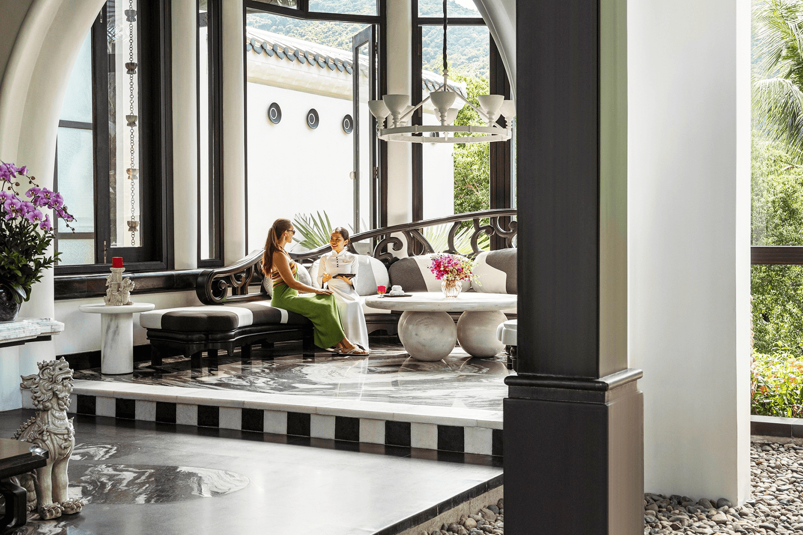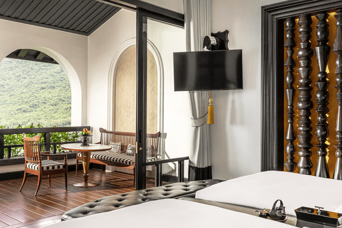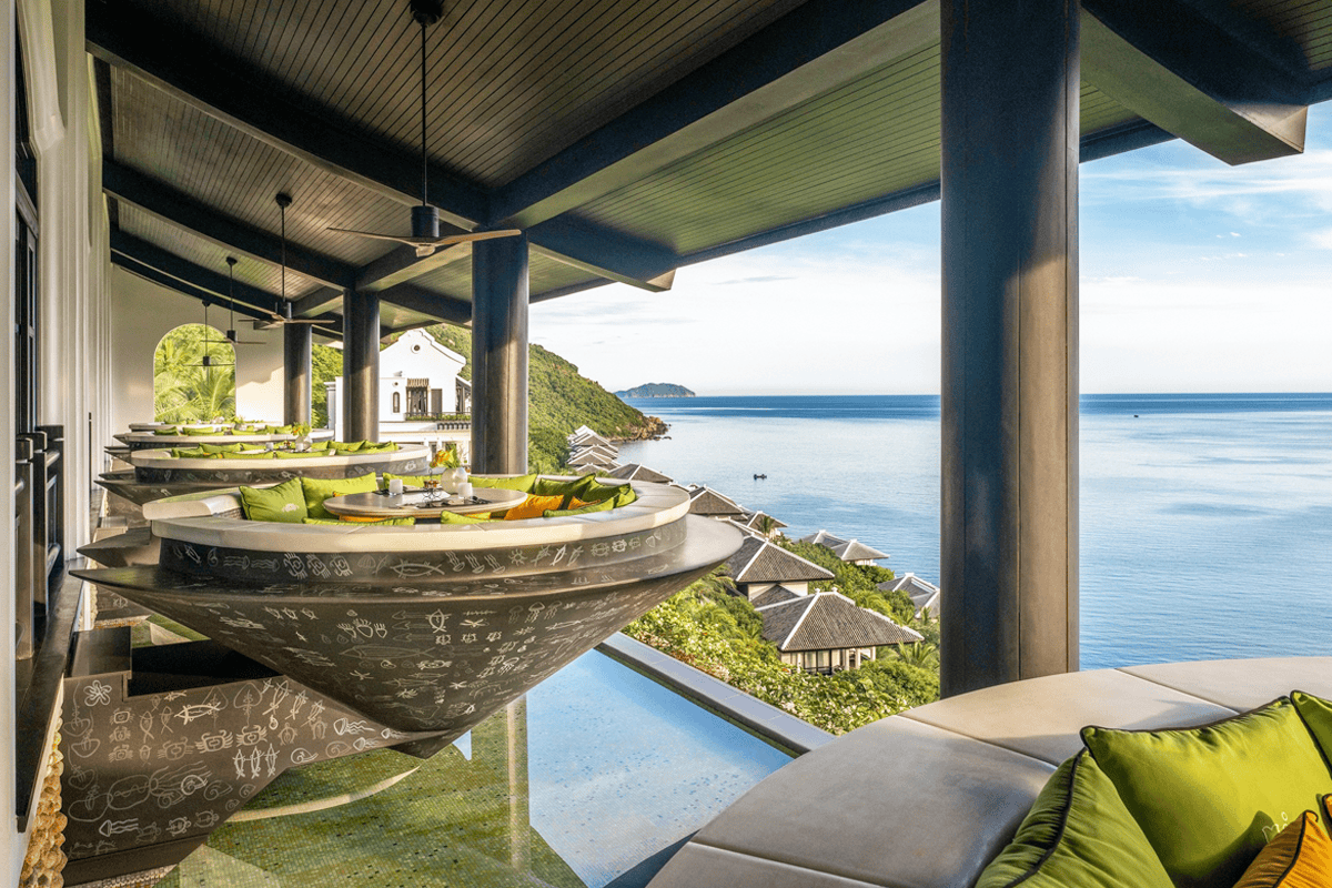 度假村整體建築與景觀由世界知名設計師Bill Bensley打造,以大膽黑白基調搭配摩登明亮的色彩和異材質,結合越南傳統寺廟與法式殖民元素,將傳統與現代完美融合,宛如一座奇幻藝術殿堂。