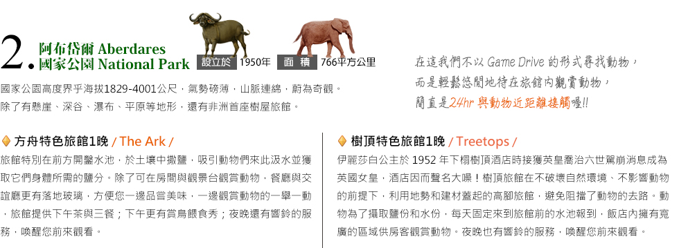 五、飯店餐食:保護區內皆安排飯店內套餐或自助餐,讓您能夠輕鬆自在的享用餐食,素食者也同樣享受良好的餐點服務體驗。